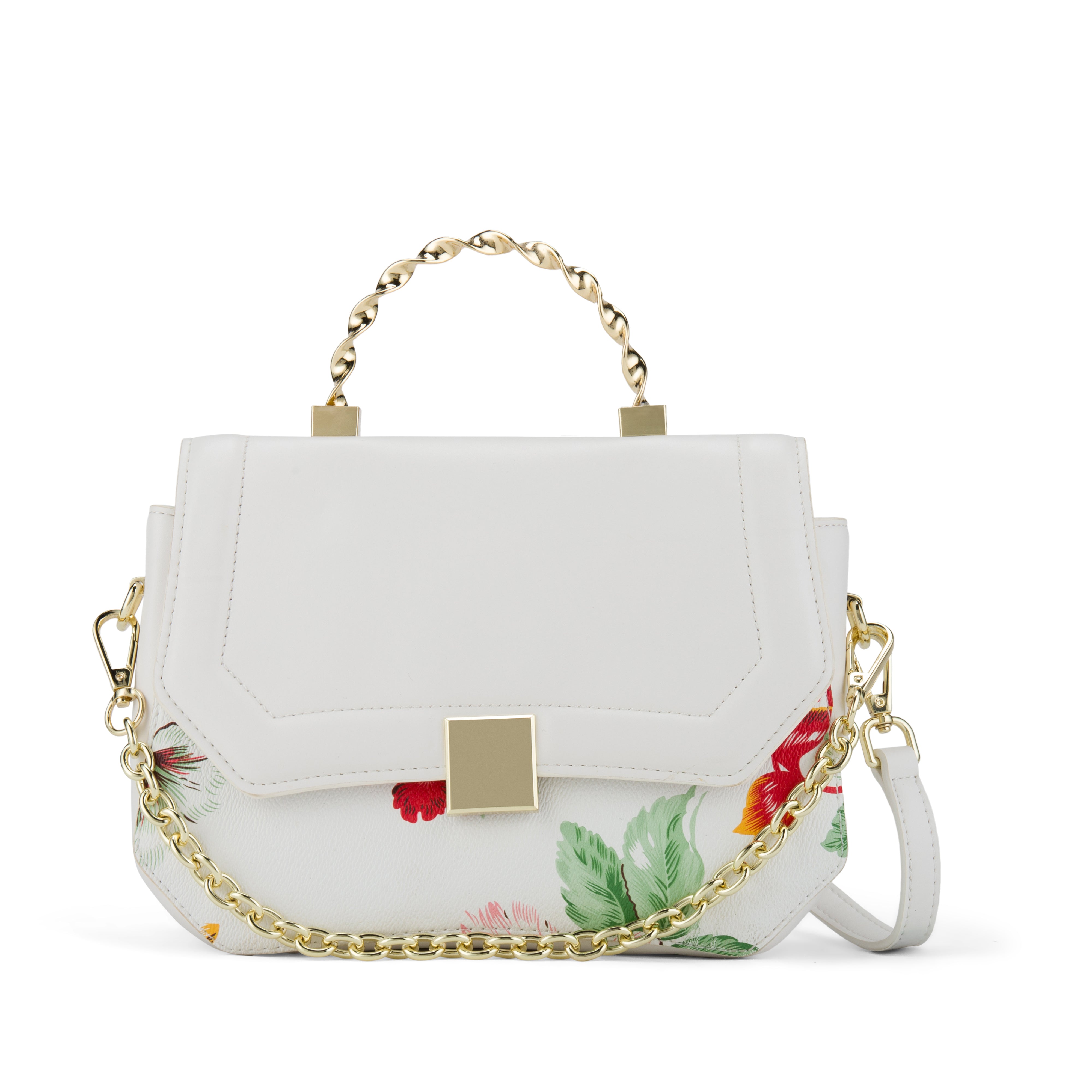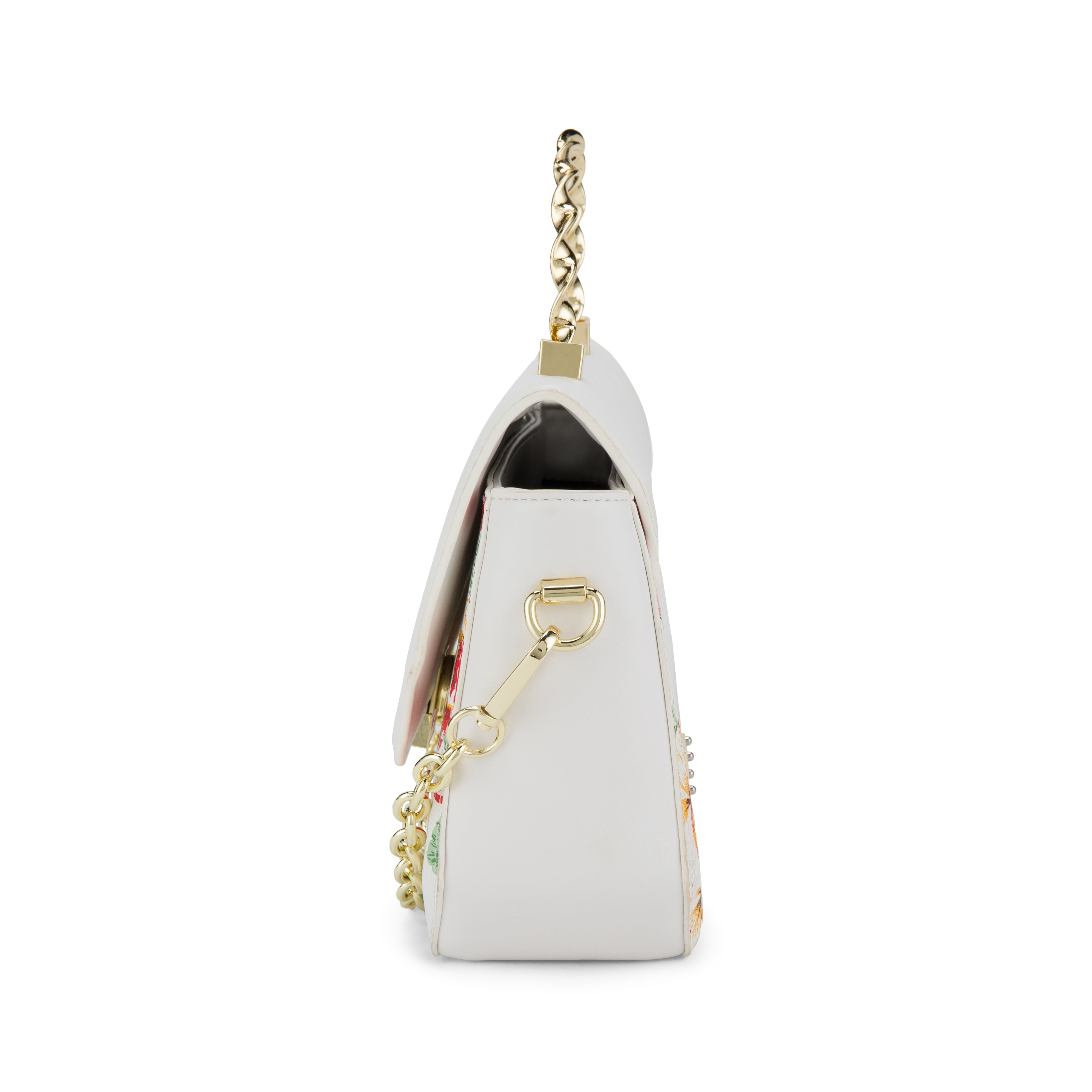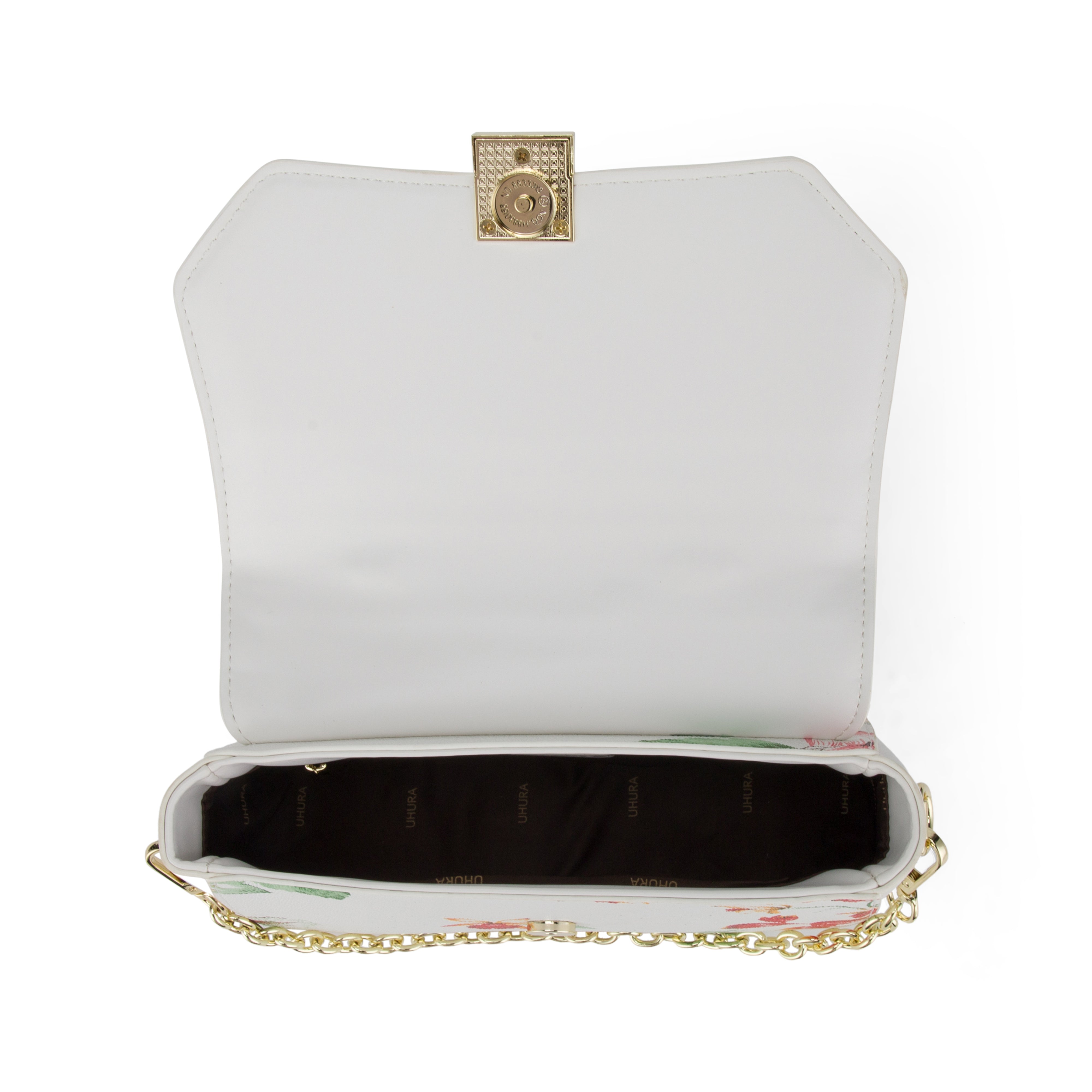 Uhura Pack of 1 White Floral Faux Leather Sling Bag for Women Gold Chain Handle