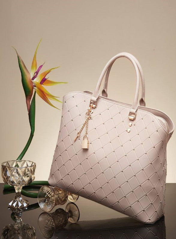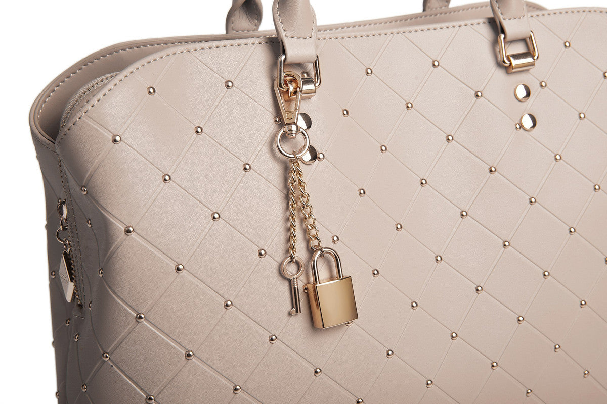 Beige Large Leather Tote - Work & Travel Shoulder Bag