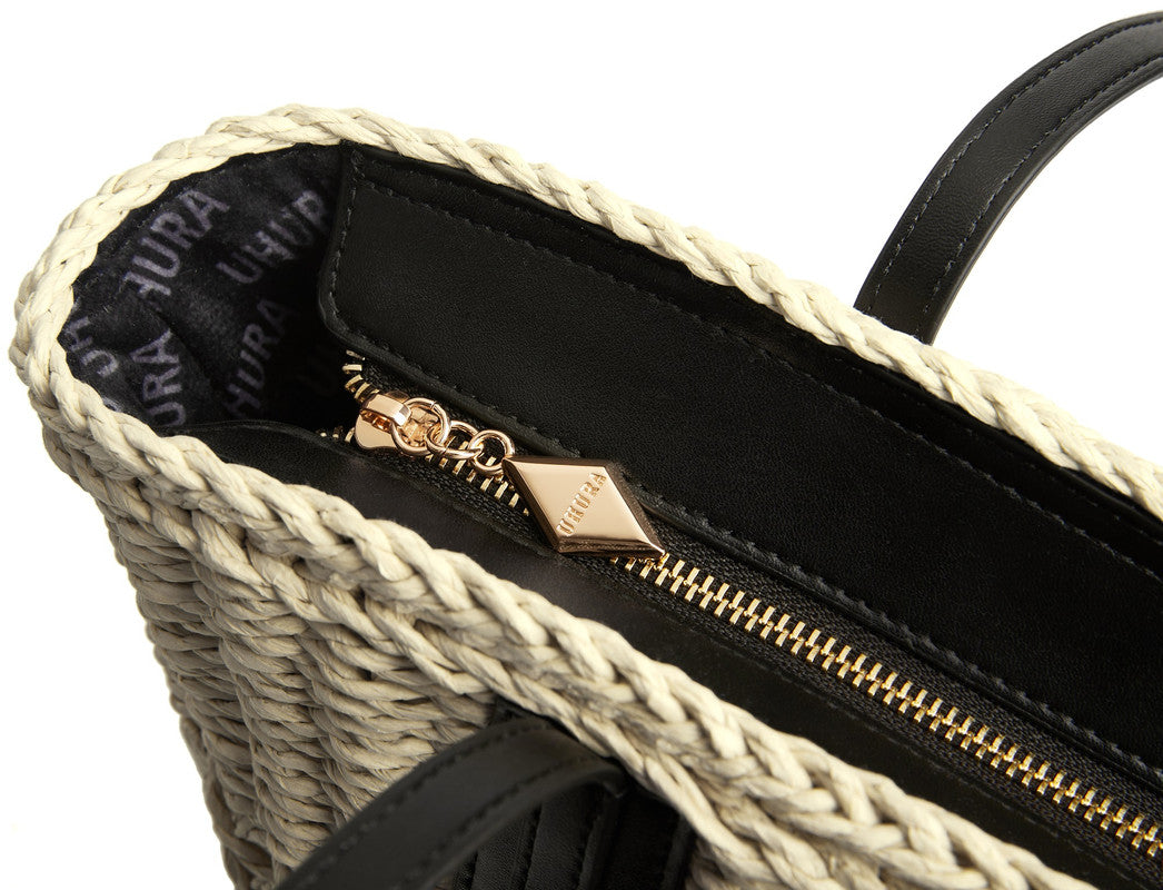 Black Handmade Woven Straw Tote - Large Summer Beach Bag
