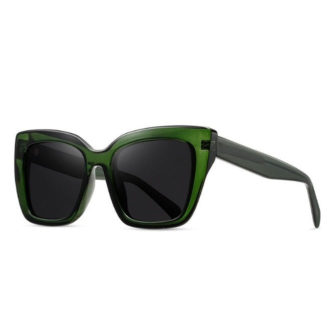 Uhura 1 Pair Green Square Sunglasses for Women Thick Frame Dark Black Lens UV Protection