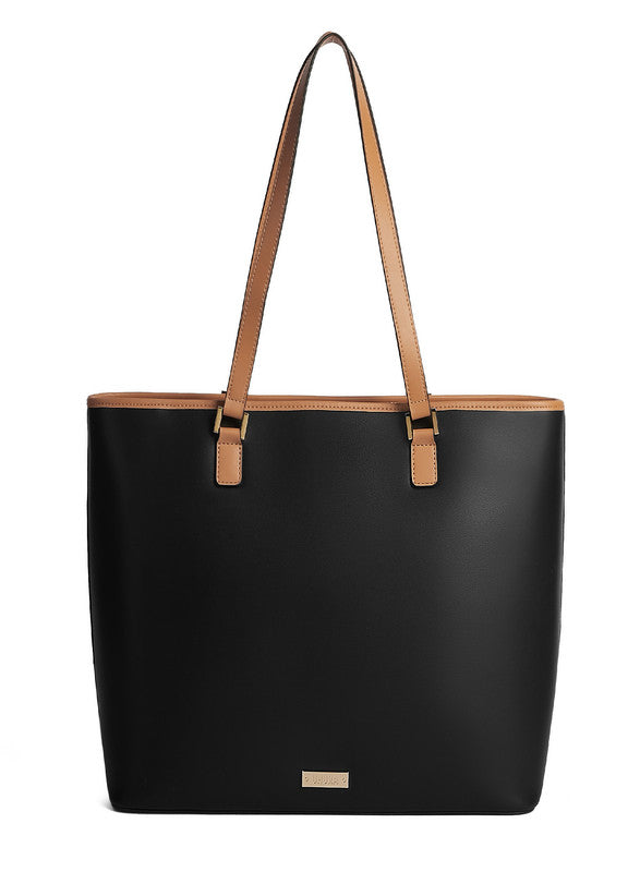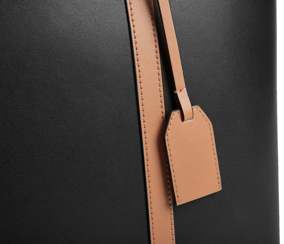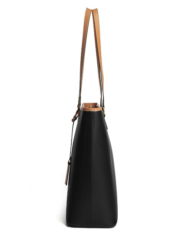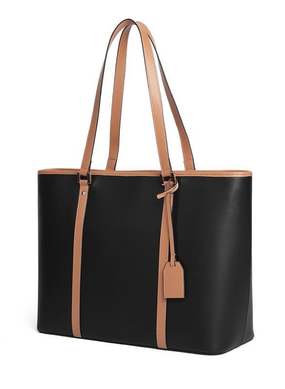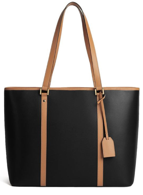 Black & Dark Brown Large Leather Tote - Elegant & Spacious
