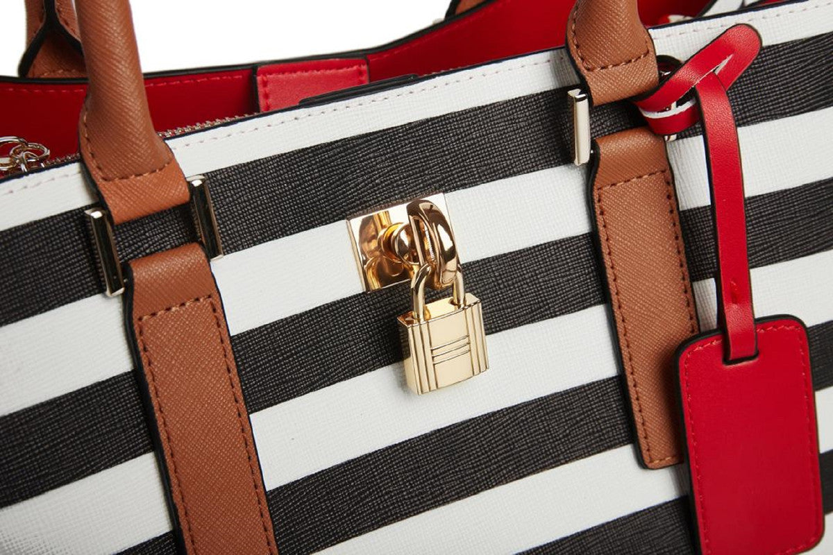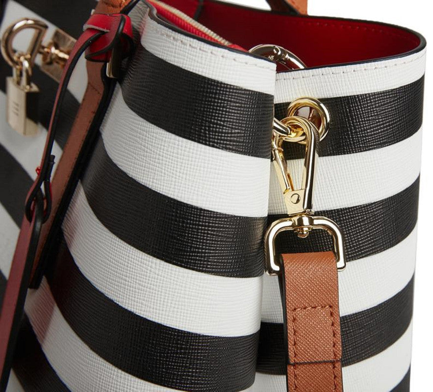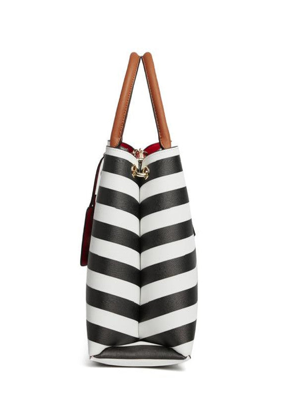 Black Striped Genuine Leather Tote Bag - Spacious & Stylish