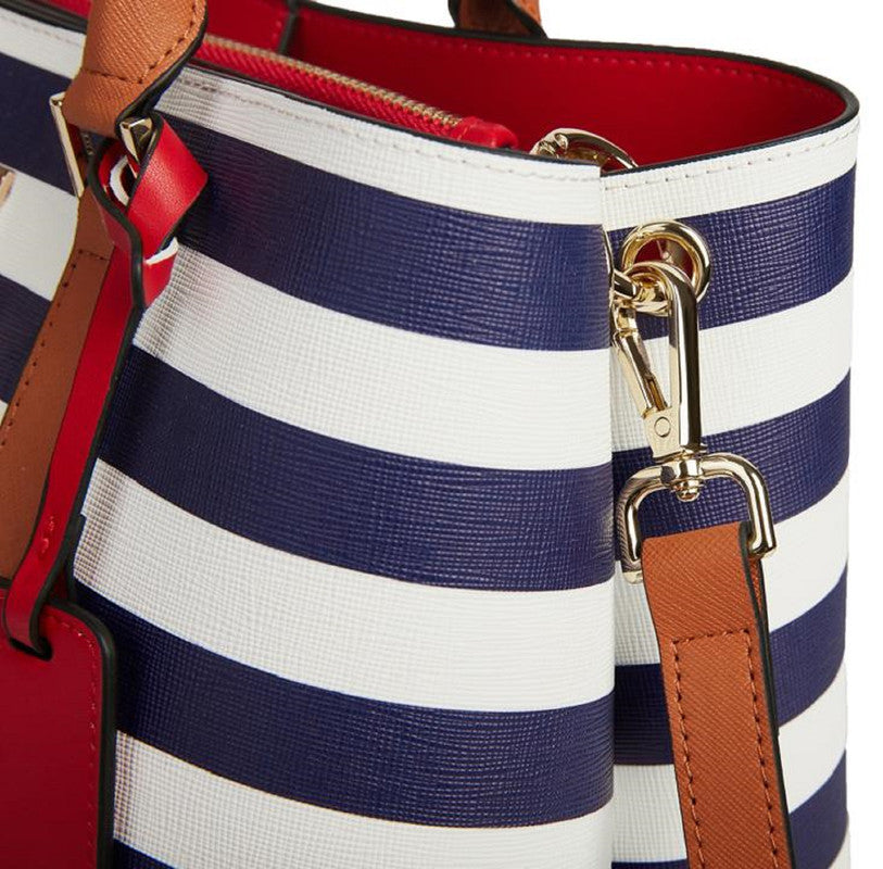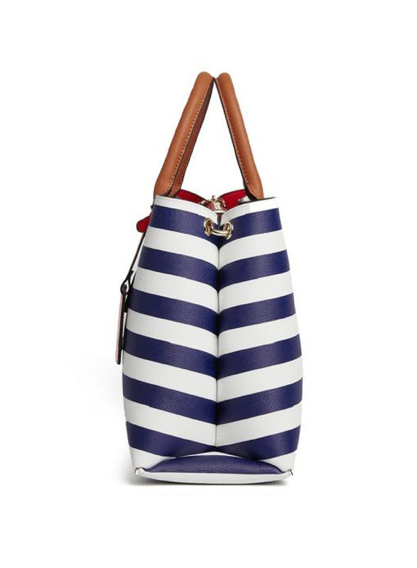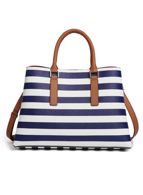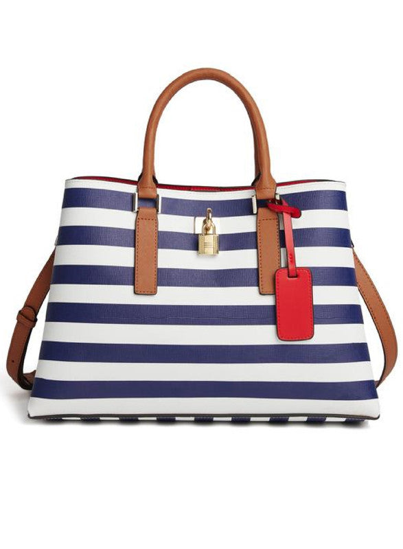 Blue Striped Genuine Leather Tote Bag - Spacious & Stylish