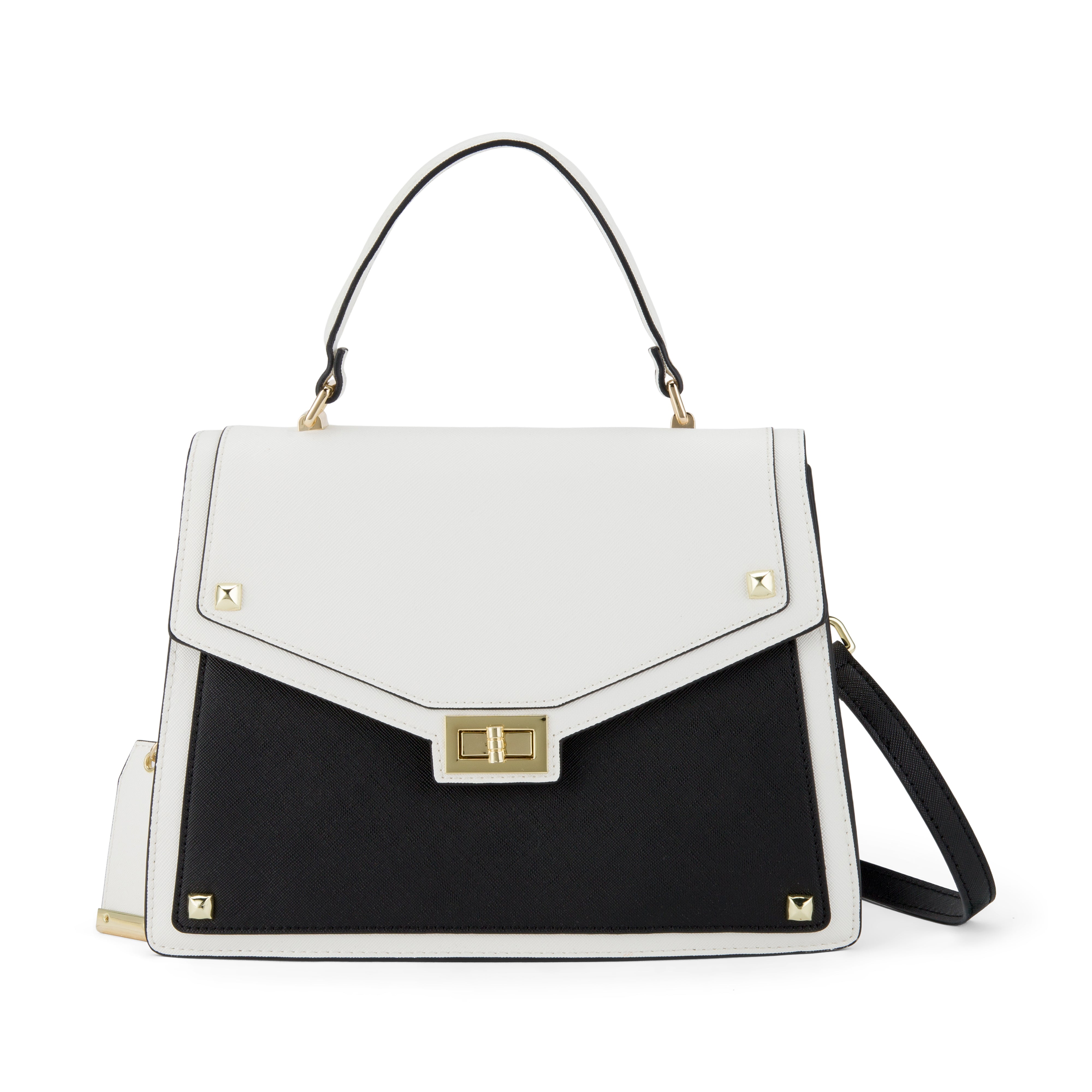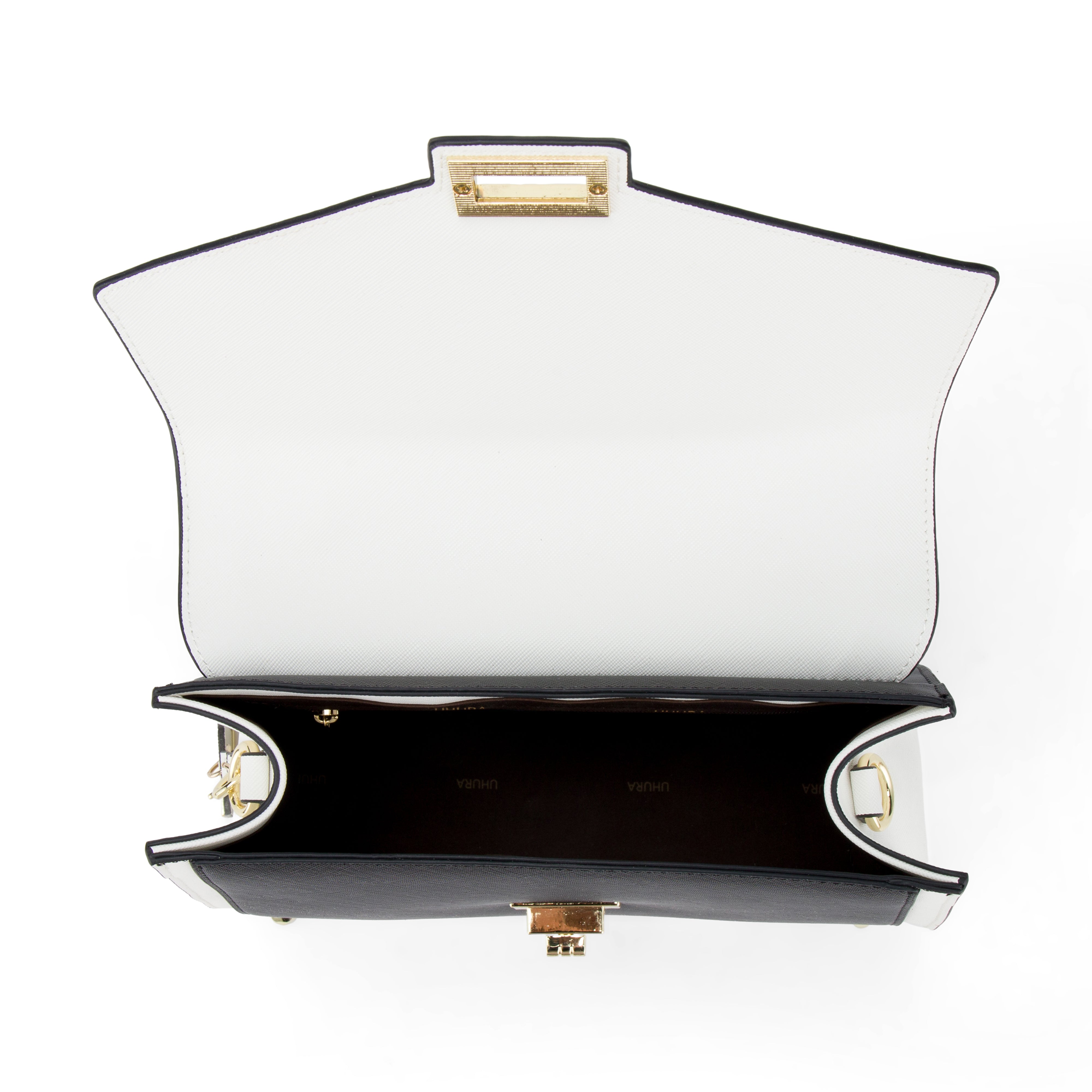 Refined in structure and color pairing, this Uhura handbag in white and black is a staple for formal looks. Its sharp design and medium size make it ideal for work, meetings, and polished daily dressing.
